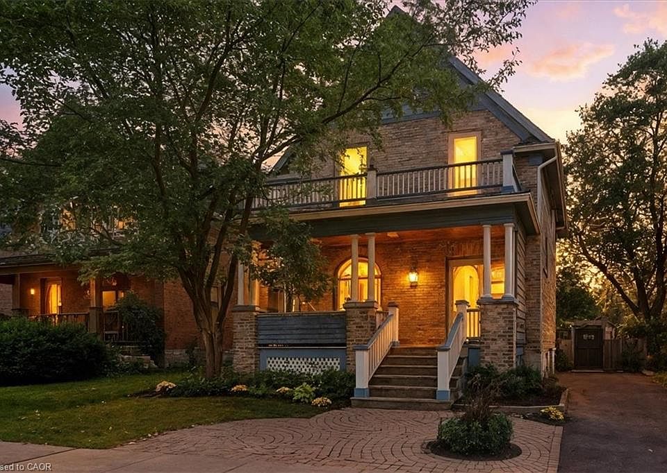 Set in the heart of Kitchener's crown jewel—Victoria Park—this pristine Berlin-vernacular residence at 19 Richmond Avenue offers a rare blend of historic charm and modern elegance. Tucked along an Avenue lined with brick heritage homes that border the lush greenery of the park, this property promises tranquility amid urban convenience. The exterior showcases timeless appeal, with its signature two-story porch spanning the full width of the home—a hallmark of Berlin-vernacular architecture. Arched windows framed by soldier course brickwork and original stained glass accents add character, while symmetrically placed gabled roof peaks create a balanced, picturesque silhouette that stands out. Step inside to discover an interior where heritage meets contemporary comfort. Soaring Victorian ceilings and tall, well-maintained original windows (complete with storms) flood the space with natural light, complemented by rich hardwood trims and restored pine floors. The gracious main-floor layout offers a sleek, modern eat-in kitchen with black stainless steel appliances; an ample dining room inviting memorable dinner parties; a cozy family room with a wood-burning fireplace for rustic warmth; and a formal living room provides an elegant retreat. Seamless indoor-outdoor living whether through the covered front porch or the expansive, restored rear deck, both offering serene views of Victoria Park. Upstairs, three comfortable bedrooms await, alongside a luxurious three-piece bathroom. A bonus walk-up attic serves as versatile recreational space. The basement expands your living options with a sizeable rec room, an updated electrical panel (fully rewired with ESA certification, neatly framed), and a mechanical room providing storage and laundry. 19 Richmond Avenue is more than a home—it's a unique piece of Kitchener's history, blending style, sophistication, and an unbeatable location that places parkside serenity at your doorstep with access to the LRT and future transit hub.