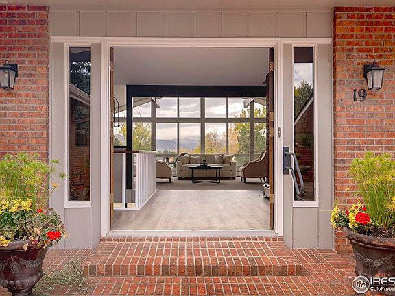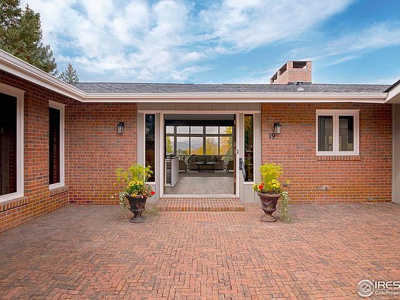 Nestled on one serene acre, this open floorplan 4-bedroom ranch home offers easy main level living. Enjoy sweeping mountain views from nearly every room and spectacular sunsets framed by a west-facing wall of windows. Inside, the light-filled design features vaulted ceilings, expansive windows, freshly painted interiors, new carpet and flooring, and updated bathrooms. The eat-in gourmet kitchen is a chef's delight, featuring a cooking alcove with a Thermador 6-burner gas cooktop and double ovens enclosed in brick arch while boasting Omega solid cherry cabinets, granite countertops and backsplash, and a walk-in pantry. Cozy living spaces are enhanced by two see-through gas-heated brick fireplaces and brick accent walls, and solid 6-panel wood doors.The home's thoughtful open floorplan layout includes a main level primary bedroom suite, spacious rooms, a walk-out basement, plenty of storage, and flexible spaces ideal for entertaining or relaxation. Indoor/outdoor living is easy with its wrap-around deck showcasing unparalleled views, a private covered patio with a built-in gas grill, and a "Little Italy" entry courtyard with a charming water fountain. Zoned ER, the property allows for one horse and includes a shed for storage or animal use. The yard is perfect for gardening, and outdoor irrigation is made easy with a dedicated well, while city water serves the interior. Modern comforts abound, including hot water heating, supplemental Mitsubishi heating and cooling units, a Dayton whole-house ventilating fan, and Therma-roll vertical outdoor shutters. There is a new roof on the house and shed plus a 2-car garage with a workshop and a 220-volt outlet. Located with easy access to Boulder, Louisville, and surrounding areas, the property is part of a picturesque neighborhood with no HOA and additional adjoining .25 acre parcel rich with evergreen trees, this home is a rare find.