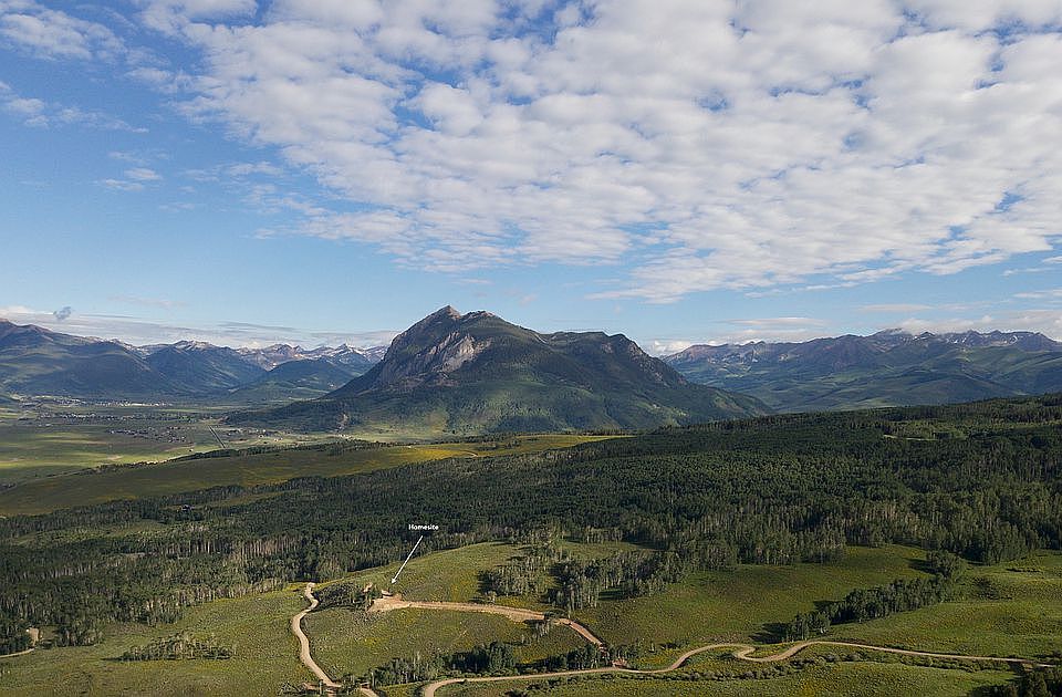 Elevated large-tract homesite in the Ridge at Crested Butte. South-facing vistas spanning 180 degrees from Round Mountain to Mt. Crested Butte. Surrounded by wildflower meadows and mature aspen groves.