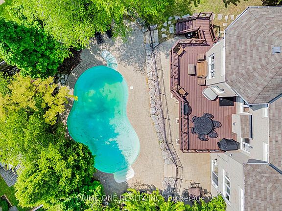 Welcome to Luxury Living at Its Finest! This spectacular built home in an exclusive enclave masterfully blends architectural designed with functionality a private pool professionally landscaped designed for privacy entertainment. Step through the elegant double-door entry into a foyer, The Centrepiece of The Home is expansive Living Room, anchored by artisan-crafted fireplace. The Chef's dream kitchen features top-tier Wolf & Miele appliances & center island. A butlers pantry designed to serve & store with style. Enjoy meals in the breakfast area with direct access to the oversized deck. The formal dining room features a chandelier with medallion, wall sconces, & scenic window framing picturesque view. Relax in the family room with overlooking the sparkling pool & landscaping. Powder room with floral wallpaper, ornate mirror, ceiling with crown Moulding & chandelier. Luxury finishes elevate key spaces, including crown molding, decorative medallions, pot lights, designer light fixtures with elegant trim around doors & windows. The lavish master suite is a private retreat, with a two-sided fireplace, custom walk-in closet, spa-inspired ensuite featuring a Jacuzzi & spacious shower with bench. Other 4 spacious bedrooms include walk-in closets & oversized windows framing scenic views, with 1 bedroom offering a private 4 Piece ensuite. 2nd floor hallway features a double-door closet, single linen closet, & laundry chute. Common 4-piece bath with additional closet. Finished walk-out basement is an entertainers paradise, featuring bedroom, recreation room with a fireplace, game & media area (pre-wired for surround sound currently used as a sitting areas), 4pc bath with a cedar-lined change room. A spacious laundry room includes two washers, dryers, built-in storage cabinetry, center island, built-in desk & family cubbies. Professionally landscaped, a fenced Pioneer pool, artful stonework, manicured hedges & mature trees. 2 BBQ hookups. 3-car garage with 240V EV charging.