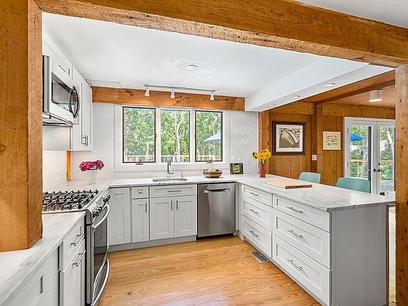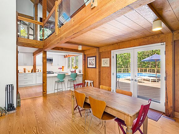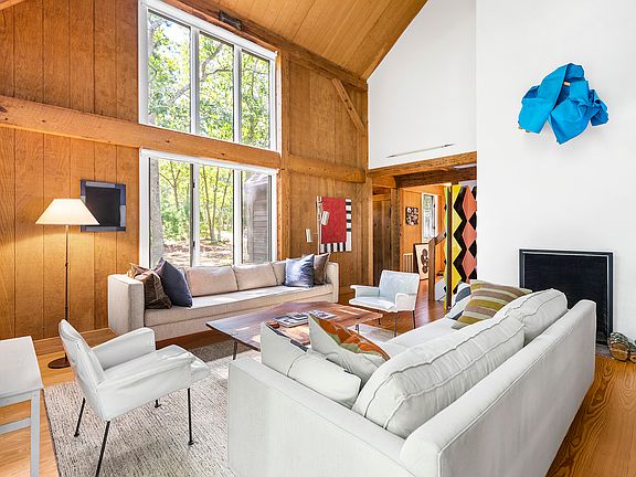 Rental Registration #: 25-3 3 Bedrooms, 2.5 Bathrooms19 Rivers Road, East Hampton. The home is available for rental by the week or full month of June and July 2025. This is a two-story home, newly renovated, with three bedrooms/2.5 bathrooms, there are additional rooms, a loft area, a den on the second level, and a sitting room off the primary suite. Situated on .67 acres, the property is fenced and backs onto a massive preserve with walking paths. The house features a soaring, double-height living room, floor-to-ceiling windows, an open living area, and mid-century modern furniture. Zoned central air-conditioning and heat, wood-burning fireplace. New kitchen, all appliances are stainless, and the countertops are white Calatrava marble. The kitchen and the home are fully equipped. The house is perfect for entertaining indoors and out.The primary bedroom suite is on the first floor, with a luxurious en-suite bath, a large tiled shower, behind a wall of glass and there is a deep soaking tub. Marble vanity top.The second floor has two bedrooms with queen-sized beds. There is an additional large open loft area that overlooks the living room, and has a skylight and views over the property. The light is beautiful. There is a den off the larger upstairs bedroom. The second-floor bath includes a large walk-in glass shower and another skylight.The 20 x 40' swimming pool is saline, it is professionally serviced weekly and is surrounded by a 1600 square foot mahogany wood deck with lounge furniture, a sofa, and chairs. There is a dining table/chairs that seat six, three umbrellas, and a gas grill.The house is on a gentle winding, quiet street which has paths through a 10,000-acre wooded preserve. The house is fully stocked with everything you want in the kitchen for cooking, serving, and entertaining, a Weber gas grill, all linens, bath and beach towels, Sonos speaker, WiFi, and cable included. The setting is private, the grounds have substantial trees and gardens. The location is just north of East Hampton Village, three miles to ocean or bay beaches. No pets or smokers, please.EH Rental Registry #25-3.