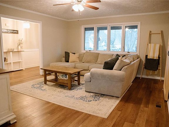This stunning 4 bedroom, 2 bathroom home sits on a spacious 0.46-acre lot in the highly sought-after Moonfield Estates neighborhood of Smithfield. Upon entering, you'll be greeted by a welcoming entryway that leads to a bright living room, as well as three of the bedrooms and two full bathrooms. The fourth bedroom has been recently renovated and features a large walk-in closet. The dining room offers ample space for gatherings and includes charming details like a wood-burning fireplace, custom bench seating, and elegant built-ins. The kitchen boasts recently updated appliances, which will convey with the home. Adjacent to the kitchen, you'll find a large laundry room, a sunroom, and a convenient side entry with a landing area. The fenced backyard includes a spacious 720 sq. ft. detached garage, great for a woodworker, hobbyist, or additional storage. Recent updates include a new roof (installed in 2022) and brand-new flooring throughout the home. This property is a must-see!