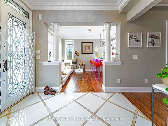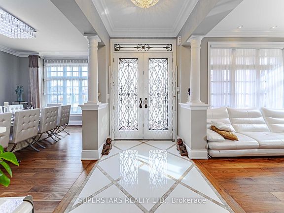 Prestigious Location: Situated On A Premium 100Ft Wide Lot In The Exclusive Devil's Elbow Community, Known For Its Serene Environment And Proximity To The Angus Glen Golf Club And Top-Ranking Schools. Exceptional Craftsmanship & Design: This Approximately 4,700 Sq. Ft. Custom Mansion Boasts A Stunning Stone And Brick Exterior, Professionally Landscaped Grounds With Exterior Pot Lighting, And An Interlock Walkway. Grand Interior: The Main Floor Features Soaring 10Ft Ceilings, While The Second Floor Offers 9Ft Ceilings, All Complemented By Upgraded Flooring, Elegant Molding, And Abundant Pot Lights. Gourmet Kitchen: The Designer Kitchen Is A Culinary Enthusiast's Dream, Featuring Granite Countertops, An Oversized Center Island, A Built-in Sub-Zero Fridge, Wolf Gas Stove With A 6-Burner Cooktop, And Other Built-In Wolf Appliances. Luxurious Accommodations: The Home Offers 5+3 Spacious Bedrooms And 8 Bathrooms. Bedrooms On The Second Floor Feature Their Own Private Ensuite Bathrooms For Ultimate Privacy And Convenience. Entertainer's Dream Basement: The Finished Basement Is Designed For Entertainment And Relaxation, Including A Great Room With A Wet Bar, A Recreation Room, An Exercise Room/Gym With A Soft Mat Floor, And Soundproof Walls. Ample Parking: Four-Car Garage And A Private Driveway With Space For An Additional Six Vehicles Provide Extensive Parking Options For Residents And Guests. Outdoor Oasis: Professionally Landscaped Backyard With Built-In BBQ, Wet Bar & Gazebo. Natural Stone Paved Patio, Lush Gardens: The meticulously designed English gardens are kept pristine with a full automated sprinkler system. For Luxurious Outdoor Living. Security And Comfort: The Property Is Equipped With A Camera-Monitored Security System, Two Air Conditioning Units(2024), Located near the Angus Glen Golf Club and top-ranking schools, this home defines luxury living. Experience The Essence Of Luxury Living In Markham At This Remarkable Residence.