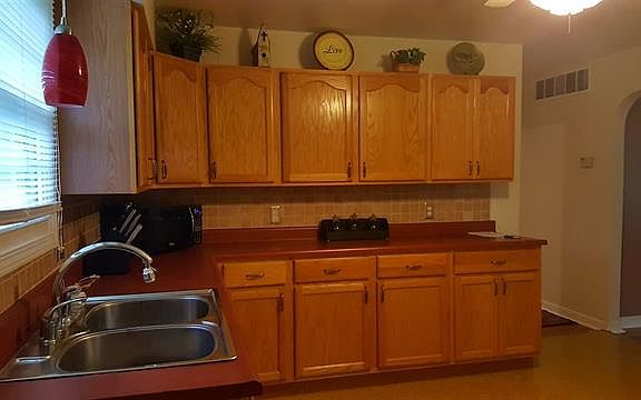 Great Westside Location. Home offers large living room with wood flooring, huge fully applianced kitchen with lots of cabinets and counter space. Large separate master suite with private bath plus two additional bedrooms. Full partially finished basement with bar. Detached garage.