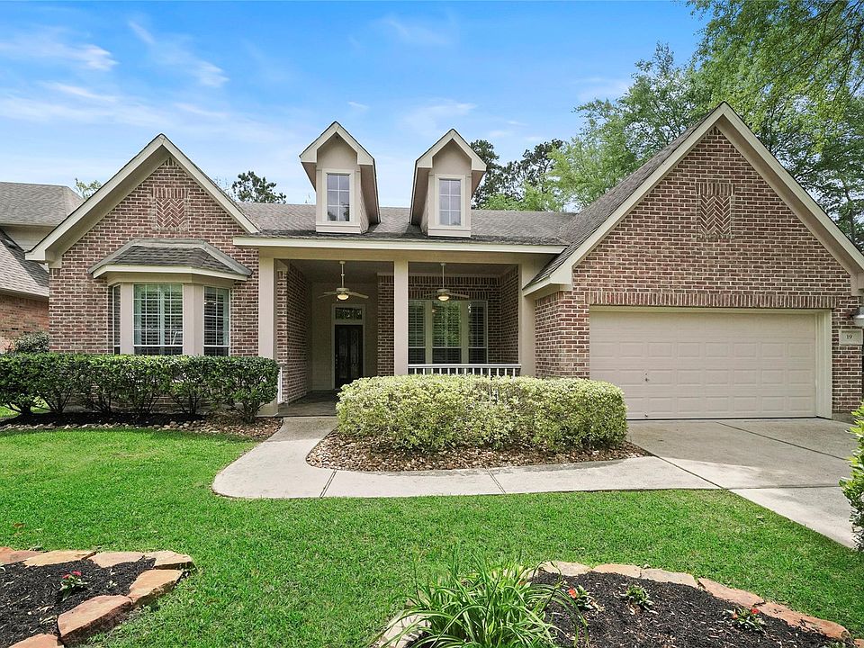 David Weekly one-story, move-in ready home on friendly cul-de-sac street close to school boasts 4 bedrooms, 2.5 full baths, study niche, gorgeous built-ins and luxurious slate flooring. Kitchen boasts rich granite and 42" cabinets w/ breakfast bar. Open, flexible floorplan also includes an open bonus room that is in-between the primary and two of the bedrooms & convenient to the utility room. 4th bedroom can be used as a study and includes a 1/2 bath. Enjoy morning coffee on the front covered porch. Great location located down the street from Coulson Tough Elementary (K-6), park, tennis courts, & Cranebrook pool. Enjoy the walking trails and all that The Woodlands hasd to offer! SHOWS LIKE A MODEL HOME!
