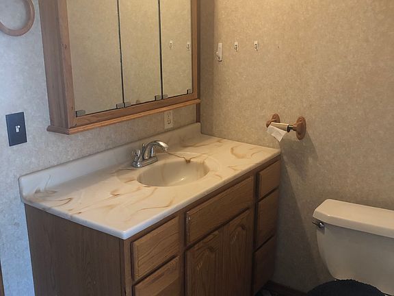 Two story home with 4 bedrooms and newer kitchen. The appliances are included in the sale. Numerous kitchen cabinets with pantry area. Formal dining and living room. Bedroom and full bathroom on first floor. The bathroom is remodeled with a jetted bathtub. The second floor has 3 bedrooms. There is a partial basement. Floor furnace and an additional gas heater in the kitchen. 100 amp electrical service. Newer windows, rear door, carpeting. Shed. Rear covered porch.