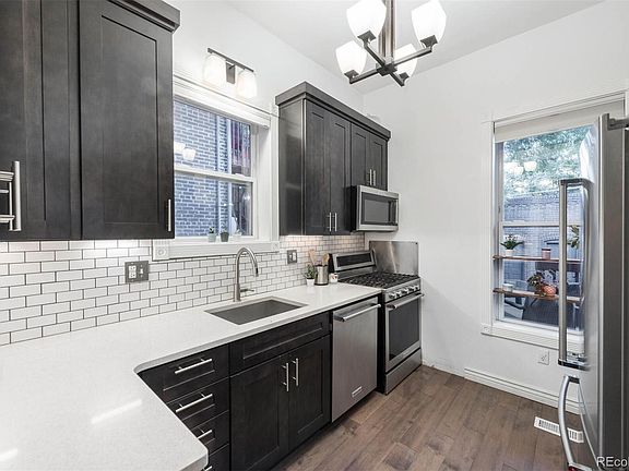 This hip urban rowhome condo lives like a townhome with a spacious rear courtyard, private back deck and detached garage! This bright end-unit is located in a welcoming 4-unit brownstone-like building with very reasonable HOA dues. Equidistant to so many fabulous restaurant and retails hot spots...live in the epicenter of three tremendous Denver neighborhoods - Speer, Baker and Washington Park! There are parks, lakes, bike paths, public transit and night life all within just a few blocks. One of the coolest features of this home is actually the master closet! Behind a one-of-a kind historic pivoting glass and mirrored door...is a closet so large that it can double as a dressing room or even a nursery! The entire property has been tastefully remodeled over time with high-end timeless finishes. Check out the updated kitchen with a professional gas range and appliances fit for a chef! The bath has been given a complete face-lift as well! While the property has been updated, much of the charm and character remain - hardwood floors throughout, large dining room, French doors, soaring 10 foot ceilings, historic fireplace with built-ins and period trim throughout. The basement is finished into a gorgeous second bedroom / guest / play space with all new recessed lighting, flooring, trim and a professionally installed egress window. Other Features Include: Central AC, One Car Detached Garage + 2 off street parking spaces (although these are not deeded but shared amongst the 4 units). Small unobtrusive HOA. Only a stone's throw to: Historians, Illegal Pete's, Beatrice & Woodsley, Sweet Action, and the Irish Rover. 3 blocks to The Spot and Carmines on Penn, Taki Sushi and Uncle! Meet friends for brunch at Lucille's! This home is an incredible value in one of the most vibrant settings in the city...come see it today!