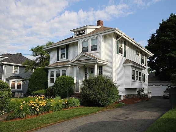 ALL OFFERS DUE WEDNESDAY JULY 17 @ NOON. Family owned for 50+ years. This stately well built colonial features 4 bedrooms with gleaming hardwood floors. Original wood beamed living room ceiling with corner fireplace and french doors leading to a bright sunroom.There is plenty of storage in the attic, 4 car driveway and a spacious cinder block two car garage. Spacious and tastefully landscaped yard. There is a full basement with a full bath and two egresses great for a playroom or man cave. Located on a quiet tree lined street in a great neighborhood within walking distance to shopping, public transportation, commuter rail, local schools, Mystic Lakes and restaurants. Easy commute to downtown Boston and all major highways (Rt 16, 2 and 9).