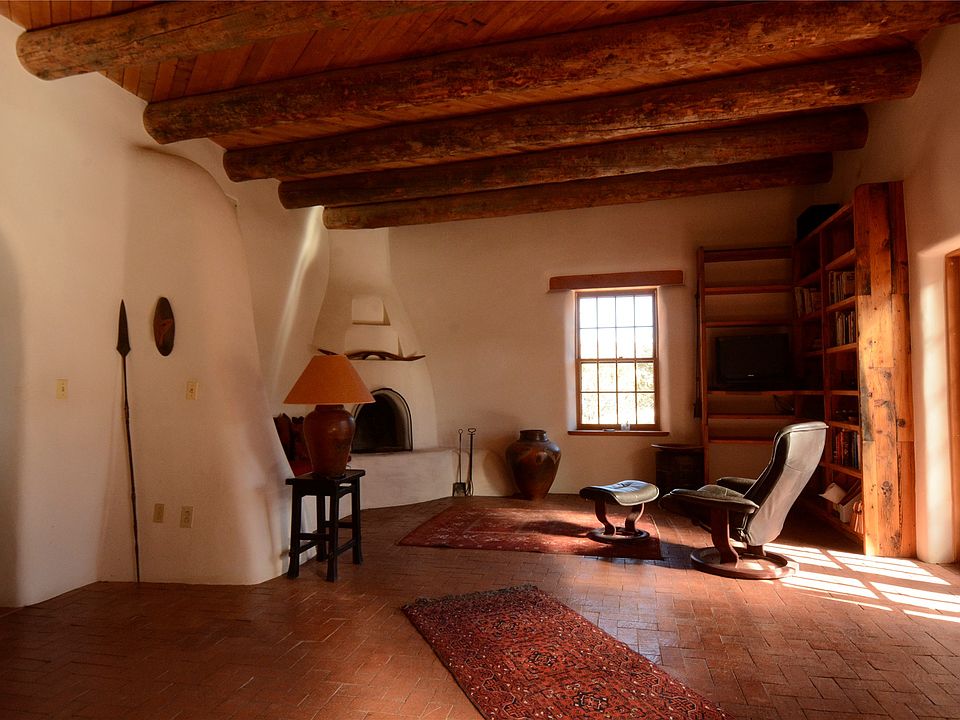 Nestled among the mountains along the Turquoise Trail south of Santa Fe is a private country living dream. Twenty acres of fenced land supports a sustainable complex that provides views, views, views and off grid existence. Horses? One can ride tremendous distances through endless beauty, directly from the property. The main house includes two bedrooms, an attached greenhouse for growing all year long, a SAUNA, and lovely adobe construction and detail. A _______ square foot Studio is also attached and heated with a large wood burning stove. An office is an extension of that space.