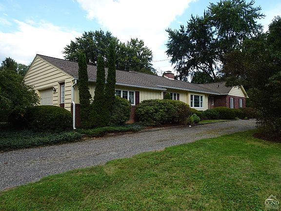 Step into a world of elegance with this stunning 1957 Mid-century Executive Ranch, set on a beautifully landscaped .82-acre lot on a dead-end lane. This spacious home boasts 1984 square feet of thoughtful design, perfect for comfortable living.The circular driveway escorts you and your guests to a welcoming entrance complete with Dutch door, while also affording room for plenty of parking aside from the attached two car garage.A step inside finds the home detailed with attractive Hardwood flooring that flows effortlessly between the rooms and adds a warmth and charm throughout the living spaces.The striking centerpiece that connects the living and dining areas, is the double-sided wood-burning fireplace; the perfect highlight to both rooms that will be a great conversation and focal point when entertaining, while also offering a cozy ambiance for the quiet nights that are alone at home.The kitchen is spacious and abundant with storage and workspaces while still offering a casual dining area for everyday meals and when entertaining the closest of guests, while the fun, retro styled swinging door leads back towards the living room's game table area that is situated at one end of the room. There is plenty of natural light to flood the rooms and the large picture window unit gives the ideal view onto the back yard; you can also find access to the yard from the living area's doorway that leads to the rustic stone patio, the perfect place for a relaxing summer evening's rest.The home boasts four generously sized bedrooms, perfect for accommodating family and guests with ease, including a primary suite featuring a convenient bath.Additional highlights to this attractive home include a first floor laundry room, (a practical feature for modern living), central air conditioning to ensure comfort in every season, and anattached 2-car garage to provide convenience and extra storage options.This property beautifully marries mid-century architecture with modern-day comforts and space for everyone, making it a rare find in today's market. Don't miss your chance to own this exceptional home! Contact us today to schedule a private showing and experience the unique charm for yourself.