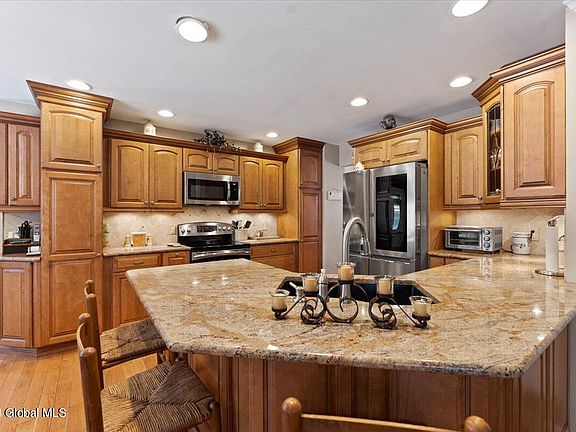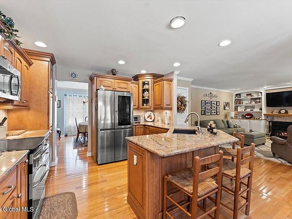 Meticulously maintained 4/5 bedroom colonial situated on .52 acre lot in Saratoga Schools! 1st floor has beautifully remodeled kitchen w upgraded appliances, granite top w breakfast bar and eat in area, formal dining, beautiful living room w built-ins & fireplace, 1st floor den or bedroom, full bath & mud area off garage. Front and rear staircases lead to 2nd level which has primary suite w walk in closet & private bath, 3 additional bedrooms, 3rd full bath and laundry room. Lovely knotty pine 3 season porch leads south to deck and spacious back yard w storage shed. 2 car garage, central air and are basement that could be finished if more space is desired! New furnace 2017, AC 2014, hot water tank 2018, appliances 2016-2021 lots of new! Nothing to do but pack your bags and move in!