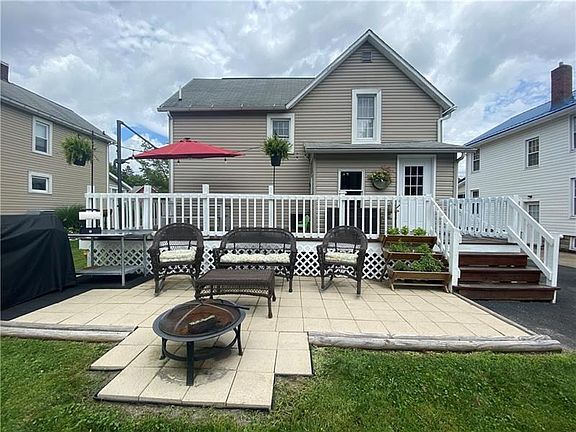 Rare opportunity to own an in-town property with large detached garage w/loft storage. Nicely updated kitchen w/appliance package. Newer vinyl siding, windows & mudroom addition. Just added to this home features a rear deck for enjoying summer evenings. Extra toilet in basement.