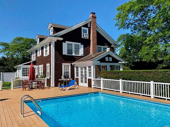 Escape to the Charm of Olde Long Island Renovated 1930s' shingle-style traditional, located south of the highway on a lush .85 acre with 20' privet hedges for privacy. Living room with fireplace, sunny breakfast room, den/1st fl bedroom, attached greenhouse room; Upstairs 4 airy corner bedrooms plus finished 3rd floor bonus room. Heated pool with pagoda poolhouse, guest cottage with living/dining room and expansive loft, garage, lawns. Stroll to bay and yacht club, minutes to LIRR and ocean beaches. Escape to charming, historic Remsenburg.