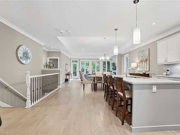 Welcome to 19 Sihler Woods where luxury meets nature! Offering over 2,400 sq. ft. of finished living space, 2+1 bedrooms, 2.5 bathrooms, and a double car garage this beautifully maintained bungalow condo is nestled in an exclusive enclave of just 22 homes. This residence backs onto the Norfolk Golf & Country Club and lush green space for an exceptional view. Enjoy being surrounded by mature trees and wildlife right in your own backyard! Step inside and be amazed by the pride of ownership and high-end finishes throughout. Featuring hardwood floors, crown moulding, and 9 ft ceilings this home exudes elegance and quality craftsmanship. The open-concept main living area includes a chef’s kitchen with premium cabinetry, wood box drawers, and dovetail joints that are built to impress and made to last. The kitchen flows seamlessly into the dining area and spacious living room, complete with a gas fireplace, tray ceiling, and large windows overlooking your picturesque wooded backyard. Step out onto your oversized deck and extended patio to relax and take in the peaceful views. The primary bedroom is a true retreat, featuring a large walk-in closet, double vanity, and a luxurious walk-in shower. A second bedroom, main floor laundry, and powder room complete this convenient and functional main level. The fully finished lower level offers even more living space, including a large rec room with a second gas fireplace (builder upgrade), a third bedroom, and a 3-piece bathroom. Plus, an additional office space that is perfect for working from home or hobbies. A large furnace room provides plenty of extra storage space. This home truly has it all — luxury, nature, and low-maintenance living all in Simcoe's most desirable location! Grass cutting and snow removal included in monthly condo fees. Book your private showing today and experience the tranquility of Sihler Woods!