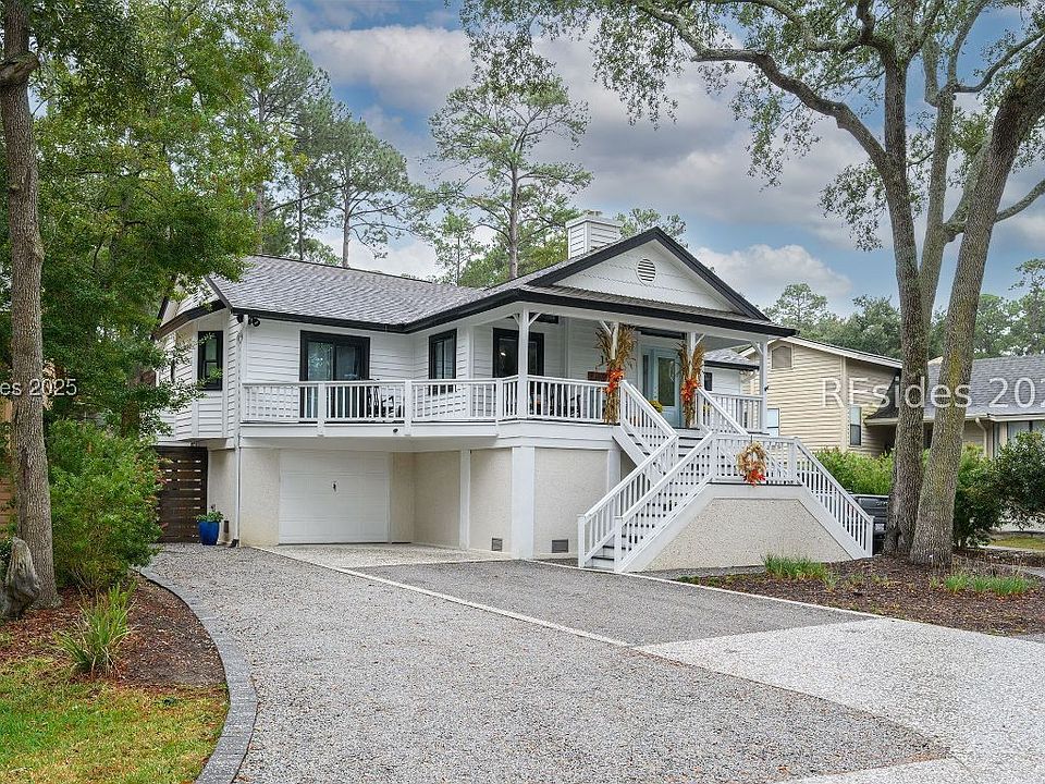 Enjoy Lowcountry charm and modern updates in this beautifully renovated home in the Cedar Woods Community in the Point Comfort area. The inviting covered front porch offers peek-a-boo views of Broad Creek-perfect for watching the vibrant colors of evening sunsets.The main living area spans 1,852 sq. ft. on the upper level, featuring an open-concept living room, dining area, and kitchen, along with 3 spacious bedrooms and 3 full baths. Step outside to the oversized deck overlooking the fenced backyard, complete with palm trees and lush landscaping-ideal for relaxing or entertaining.The lower level adds approximately 1,400 sq. ft. of enclosed space, including a workshop, storage area, common space, and workout room. Two additional 400 sq. ft. garages sit on either side of the home, providing ample parking and workspace.Extensive updates throughout include new electrical, plumbing, ductwork, HVAC, tankless water heaters, appliances, kitchen, bathrooms, and more. Enjoy the convenience of a propane-fueled fireplace, cooktop, and outdoor grill, plus double ovens for the home chef.This home truly offers the perfect blend of classic Lowcountry character and modern comfort-move-in ready and waiting for you!
