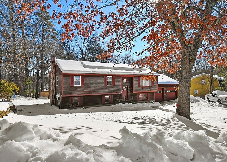 Not your average Split-Level in a charming neighborhood in Derry, NH! The bright and sunny main level features a spacious living room with vaulted ceilings, seamlessly flowing into the kitchen and dining area. The kitchen is a chef’s delight, complete with Corian countertops, a breakfast bar, and SS newer appliances. The dining area leads to the inviting 3-season porch, perfect for relaxing. Down the hall, you’ll find 3 well-sized bedrooms, including a primary with 2 closets. A beautiful full bathroom completes the main level. The lower level is brimming with potential—fully insulated with 9.5-foot ceilings, a full bathroom, wood-burning stove, and a dedicated laundry area. Bring your vision to life in this versatile space with an additional 1152 of finished square footage potential! This home also boasts solar panels for energy efficiency and a two-car garage for added convenience. Come see the difference in this split level for yourself before it’s gone!