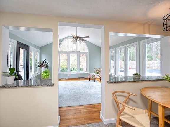 This revitalized cape sits on almost an acre in the serene and desirable town of Plympton, offering not only a peaceful retreat but also a fantastic venue for hosting & making lasting memories. A stunning feature of this home is the cathedral living room which offers panoramic views of nature and the gorgeous pool. 2 living rooms w/ soaring ceilings surround the spacious kitchen for an appealing open flow. Lovely kitchen features granite, stainless appl, 2 pantries. Need office/playrm/bedrms? 4 additional great rooms to suite your needs; 2 rooms & full bath complete the 1st floor while 2 rooms & full bath create the 2nd floor. Finish basem is another stunning feature; offers a 3rd living room w/ granite-bar, separate room, plus storage. Meticulous owners made improvements: New Harvey windows, pool pump, chimney cap/repointed, interior painted, power washed, insulation & more. Deck. 20x10 Shed w/ workbench. Generator switch. 2022 fence & lux vinyl plank. 2020 AC. Sale due to job chg.