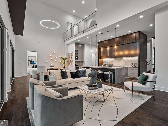 Welcome to Chastain Park in this new construction home, complete with walk out saltwater pool and spa. The stunning contemporary residence offers the epitome of luxury living. Step inside and be greeted by a grand two-story foyer, setting the stage for elegance. This home is perfect for those who appreciate space, comfort, and modern design with 12' ceilings throughout the main and second levels and 10' ceilings in the finished terrace level. The large open-concept kitchen is a true chef's delight, featuring all top-of-the-line Wolf and Subzero appliances, including a gas cooktop, double oven, refrigerator, microwave, and beverage cooler. Ample cabinetry offers plenty of storage, plus a hidden walk-in pantry can be found behind cabinet doors. High-end finishes are noted throughout the home, from the richly stained white oak hardwood floors to the soaring ceilings on all levels. Anderson windows, designed for both entertaining and relaxation, making this home an entertainer's paradise. Slide open the multi-slide doors, and you'll find yourself in an outdoor oasis. The walk-out saltwater pool and spa on the main level provide the ideal backdrop for summer gatherings and year-round relaxation. The gorgeous primary suite on the upper level offers a serene escape, with its ensuite bathroom, decked in handsome designer tiling, and oversized walk-in closet, providing a perfect private retreat. Additionally, there are 3 more generously sized bedrooms upstairs, each with an ensuite bath and walk-in closet, complete with custom built-in shelving. A large main-level bedroom also offers a secondary Primary-feel with a large closet and generously sized bathroom with double vanity and stunning tiled walls. Convenience is key, with two well-placed laundry rooms-one on the main floor and one upstairs-making everyday chores a breeze. The large finished basement is a versatile space and includes a daylight bedroom and a full bathroom, as well as an expansive entertainment area for family gatherings or hosting guests. Just minutes from all that Sandy Springs and Buckhead have to offer. Hardwoods to be refinished - rendering in second photo shows lighter option stain.