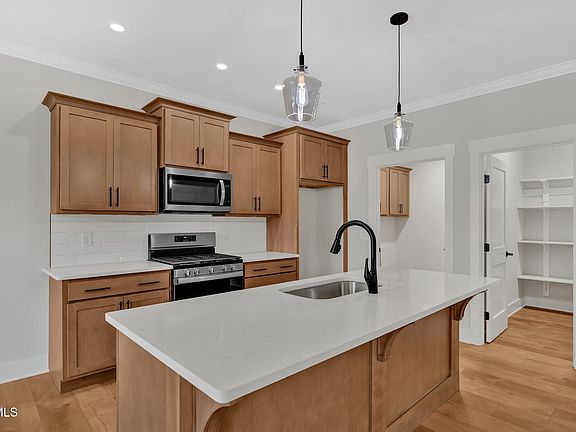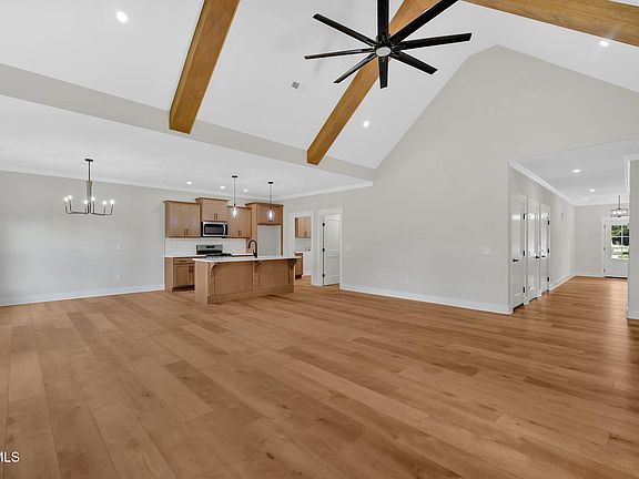 New construction patio home in the heart of. Boones Creek! Over 1600 sq ft of well-planned living space with a focus on comfort, functionality, and modern style. The open floor plan provides a seamless flow between the living, dining, and kitchen areas, making it ideal for both entertaining and everyday life. This living room is a statement piece with its tall vaulted ceilings, wood beams and gas fireplace.