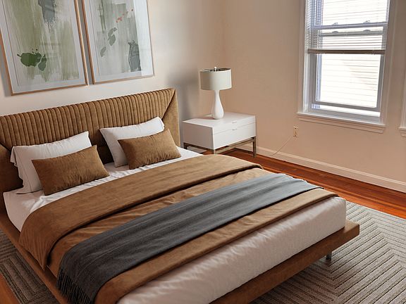 Large, recently renovated 2nd floor 2-bed/1.5-bath plus 3 office apartment for rent in Somerville on quiet 1-way street. 1 block to Gilman Square, green line, shops, restaurants and cafes. Two large bedrooms can comfortably fit queen beds, plus dresser and small desk. Living room with hardwood floors throughout. Modern kitchen with stainless steel appliances, dishwasher, gas stove, microwave, disposal and fridge. Two offices, plus large walk-in closet/office off one of the bedrooms. Washer/dryer in-unit. One (1) garage parking spot with door clicker included in rent. No pets please. Available 9/1. First and last month's rent required only. NO broker's fee or security deposit required. Some photos virtually staged.