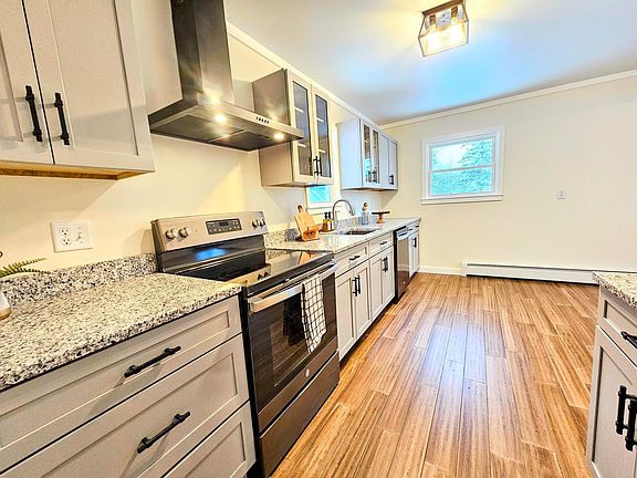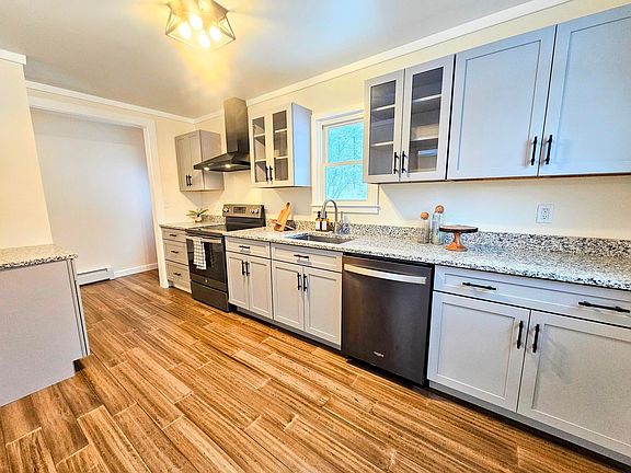 Welcome to Stowe Hill Road, a renovated 3-bedroom, 2-bath home that seamlessly blends modern luxury with the charm of Vermont living. New roof! New kitchen! New bathroom and flooring! Septic inspection with great results! The list goes on. This nicely updated home is a rare offering, just minutes from Mount Snow. Step inside to discover a floor plan that effortlessly combines functionality and style. The living spaces are bathed in natural light, creating a warm and inviting atmosphere. The contemporary kitchen is a culinary delight, featuring all brand new slate colored appliances, gray granite countertops, pine built in pantry and ample cabinet space. The 3 bedrooms provide plenty of space for everyone! The 2 separate living spaces on different floors offer options for larger families or groups who are traveling. What really sets this property apart is its prime location. Situated on Stowe Hill Road, it offers the perfect blend of tranquility and convenience. Enjoy the half mile proximity to downtown Wilmington, where charming shops, cafes, and restaurants await. For outdoor enthusiasts, Mount Snow is just minutes away, providing year-round recreation and adventure. Whether you seek a full-time residence or a vacation retreat this renovated home exceeds expectations. Furniture conveys with some exclusions, personal items do not. Delayed showings to 2/6