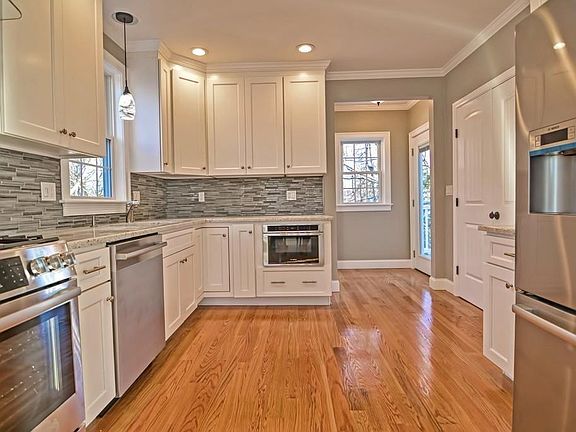 Open House Cancelled. Absolutely Spectacular - Beautiful, Stunning and Luxurious -this home is one of the best we've brought to the market this year! Completely renovated in 2019 featuring: New Roof, Siding, Energy Star Windows, Hardwood Floors, Furnace(s), Central A/C, Bathrooms, Kitchen, Lighting, Deck, Plumbing, Electrical, Energy Saving Spray-Foam Insulation, 1st Fl. Laundry and More! You'll love the attention to detail brought throughout every part of this home's interior and exterior renovation. Stunning hardwood floors are throughout the 1st and 2nd floors. The custom designed/Open Concept Eat-in Chef's Kitchen has Natural Gas SS Appliances including exterior venting Range hood, under-counter Microwave, Backsplash, Beautiful White Custom Cabinets and stunning Granite Counter-tops. Master Bedroom Suite features 2 large closets and Luxurious Master Bath w/Tiled shower. Prime location steps from Train, Restaurants, Shopping, Schools and Major Highways. Showings start now