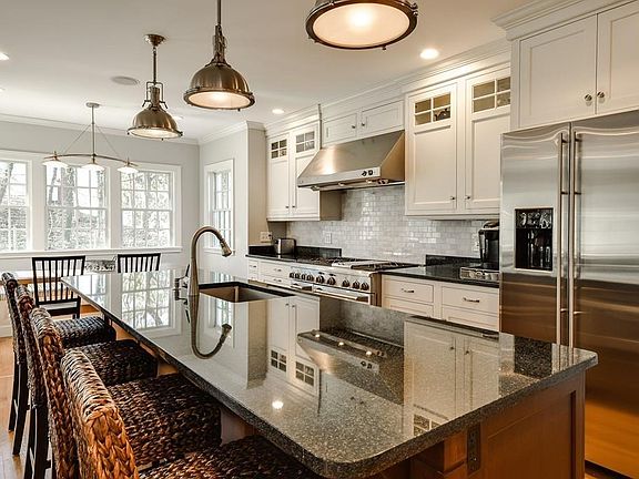 Wow! Move right in to this surprisingly spacious, wonderfully renovated Colonial on a large, beautifully landscaped lot in close-to-town location! 2012 renovation features all new windows, new roof, kitchen with expansive island, stainless steel appliances,light-filled dining area, adjacent to family room with custom built-ins and gas fireplace. New and updated baths. Lots of spaces for everyone, including the first floor den and upstairs office. Four bedrooms, 3 full and 2 half baths. Master suite with walk-in closet plus additional en suite bedroom. Enjoy the outdoors from the blue stone patio and sprawling, fenced backyard. Lower level features great entertaining space, bar, and half bath.