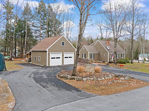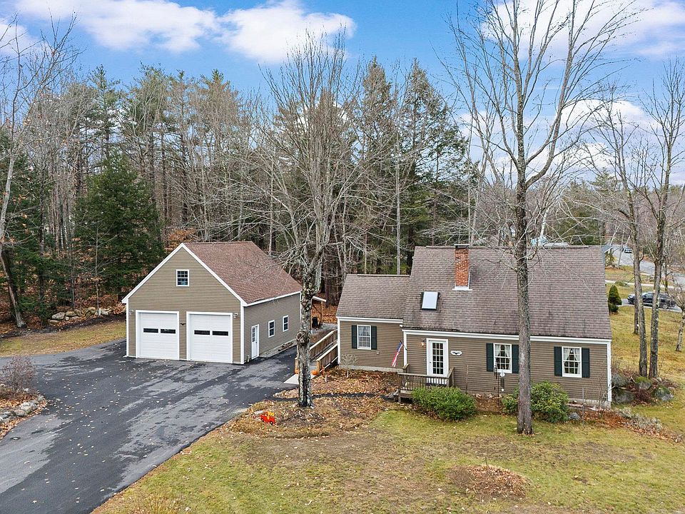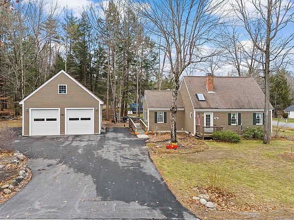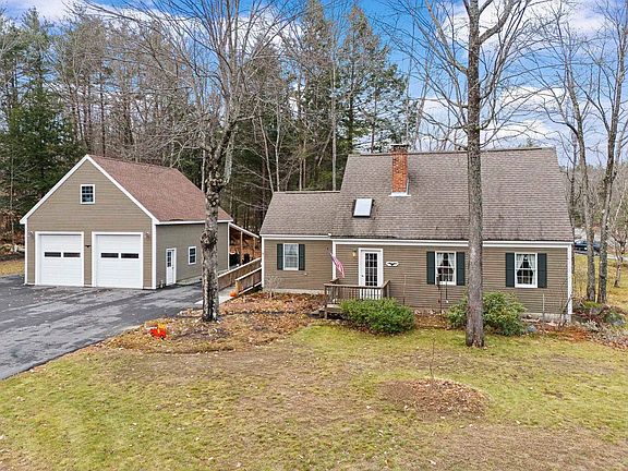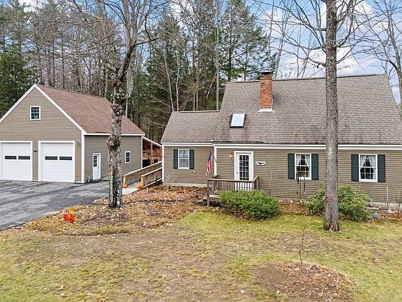 Attention auto enthusiasists! This property has it all! Nestled in the historic town of Hillsborough, NH, this charming Cape is waiting for you! Sitting on a large CORNER lot with a custom oversized HEATED garage, this home has a circular driveway and plenty of room to park additional vehicles, campers and RVs! Upgrades galore await inside--updated kitchen and bathrooms, flooring and freshly painted interior. First floor office or bedroom is also plus. The cozy living area boasts a fireplace and wood stove for those chilly NH evenings. Second floor main bedroom has perfect a space for reading or watching TV. The additional room can be used for either a bedroom or den/office space. The main hall has a skylight which adds to the abundant natural light throughout the home. The basement has plenty of storage-laundry space. Oversized garage with 10'x10' doors houses a pellet stove and a 12,000lb. auto and truck lift-perfect for car enthusiasts and to store seasonal vehicles! Please see additional document detailing garage specs. Short distance to all shopping, skiing, hiking, boating. Convenient to Concord, Keene. Make this your next address! OPEN HOUSE--Saturday, January 18th, 2025 from 10am to 1pm.