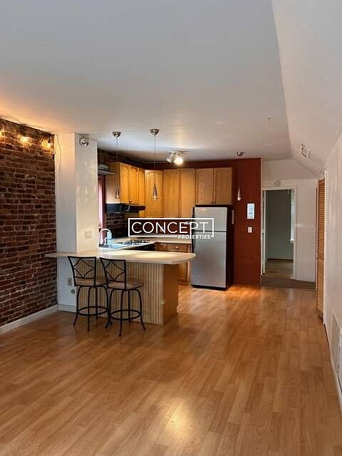 Sunny 2-Bedroom in Brookline Village Available 7/1 $2,700 w/ Parking Charming and spacious 2-bedroom apartment located on a quiet dead-end street in Brookline Village. Available for July 1st move-in. Features: Exposed brick in living room and bedrooms Hardwood flooring throughout Open kitchen with breakfast bar and dishwasher 1 off-street parking spot included No utilities included No Pets Move-in Costs: First month, last month, $1,000 security deposit, and broker fee due at signing. Don t miss this great value in a fantastic location!