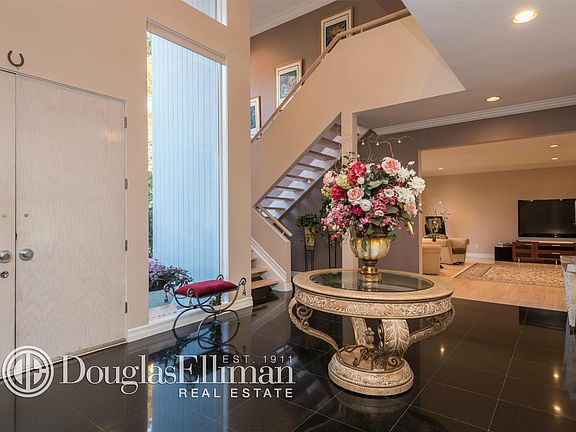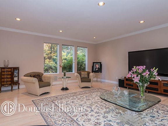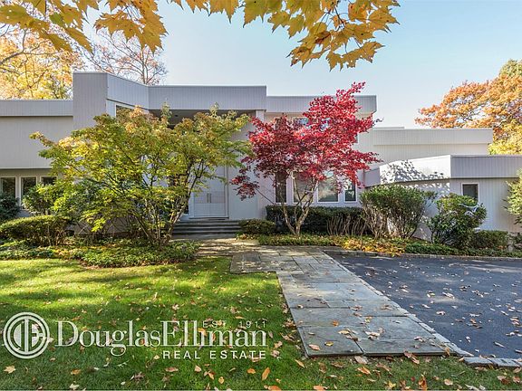 Enjoy the serenity and ever-changing beauty of nature in this stunning cedar-and-glass home sitting resplendently on well over 2 acres of gorgeous grounds surrounded on 3 sides by pristine woodland. Partake of your morning coffee on the expansive, multi-level deck enjoying all the sights and sounds nature has to offer. Though seemingly remote, this delightful sanctuary is just a short drive to major highways, train station and the busy shopping district of Syosset. It is also close to golf, boating, beaches, universities, as well as public and private schools. Residents of this bucolic hamlet, known as Oyster Bay Cove, also enjoy beach and mooring privileges on Oyster Bay and Cold Spring Harbor.For those who enjoy entertaining, this 5-bedroom, 6.5-bath gem features spacious rooms with blond hardwood floors, soaring ceilings and easy flow from room to room. Guests are welcomed into an open and airy floor plan beginning with a sunny 2-story foyer with Absolute Black granite floors and a striking staircase ascending to a 2nd floor balcony overlooking all. To the rear, the sunken living room, with its granite fireplace and 2-story wall of glass, opens to the rear deck and the breathtaking wooded views. The banquet-sized dining room is perfect for large dinner parties and has easy access to the spacious eat-in-kitchen that also opens to the deck and a large built-in barbecue. Sleek white lacquered cabinetry with granite countertop plus a center island enfold updated appliances.Across the foyer from the dining room, the generous den, offering panoramic views of both front and rear property, provides ample space for entertaining. A powder room, full bath, staff quarters and laundry complete the main level.On the second floor, a spacious and serene master suite includes a large master bedroom, walk-in closet and a luxurious marble master bath with a twin vanity, glass-enclosed shower and a whirlpool tub enjoying wooded vistas through several windows. A nicely appointed Jack & Jill suite includes 2 bedrooms, walk-in closets and a shared bath. A 4th bedroom with bath en suite also has a walk-in closet. On a landing between levels, a bonus room serves as a large den/playroom with wall-to-wall windows.Ideal for entertaining, the finished lower level boasts a lounge with walk-in wet bar, entertainment room, home theater/game room, gym, steam room, sauna, and 2 full cabana baths that open directly to the pool area. No matter the season or the occasion, this spacious home, with its bright and open floor plan, is ready to fill your needs. Its breathtaking rear property beckons one to explore down flights of wide graceful stairs to the pool and the lower lawns. There is room and an interest for everyone. Whether your mood is one of quiet contemplation or merriment with friends, you can fulfill it here.
