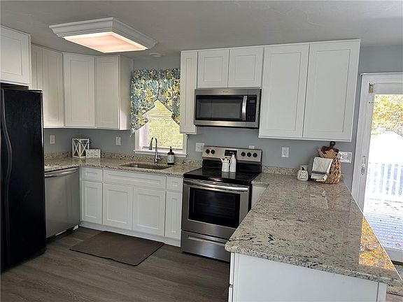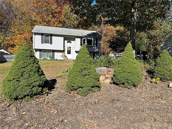Built in 2002, this beautiful Raised Ranch is move-in condition; perfect for first time buyers. Open floor plan with tons of natural light, newer white shaker kitchen cabinets with White Cloud granite countertops, appliances included (double door fridge, dishwasher, oven/range, microwave), dining area with sliders to oversized 12 x 12 composite rear deck, open to large sized living room, 3 bedrooms with double door closets, updated first floor bathroom with tiled shower and new vanity. Fully finished lower level with walkout to rear yard, double sized family room, laundry room, and utility/storage room. Recently updated: new carpets, flooring, painting, new exterior door, new storm doors, and newer kitchen. Beautiful fenced rear yard with shed, brick patio for year round grilling, and privacy, as the rear yard is currently wooded. Exterior is maintenance free with vinyl siding, replacement windows, and composite deck/stairs to rear yard with vinyl handrails. Connected to town sewers and well for water; well pump was replaced in 2018. Great location! Home is only 6 minutes to Route 395, 5 minutes to the center of town, and only 11 minutes to RI. Nothing to do but move-in and call it Home.