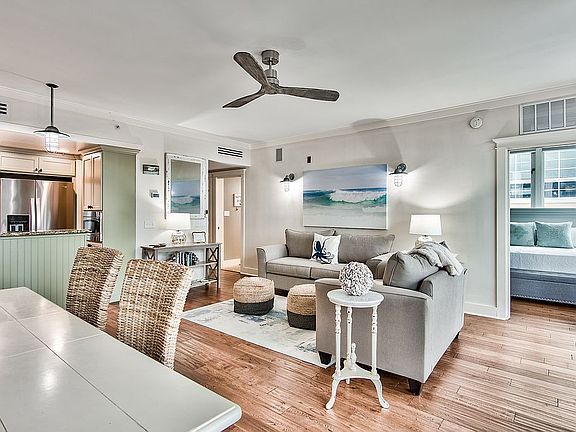 At only a half block from the beautiful white sugar sand beach and tranquil emerald green waters of the Gulf of Mexico, this Santa Rosa Beach gem is perfect for personal use or rental opportunities. The condo is ideally located offering ocean views from both the balcony and master suite, walking distance to coffee, sandwich and ice cream shops, beach wear and rental outlets, and open-air bars and restaurants. Additionally, this two bedroom, two bath is equipped with washer/dryer, full kitchen, dining and family area, and offers complimentary use of three pools with hot tubs. Updates include: new stylish ceiling fans, three large new HD TV’s, updated electrical, new oversized hot water tank, stylish furniture and décor. ***Realtors bring buyer, 2% commission available***
