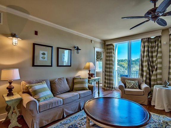 Fewer than 150 yards from stunning white sand beach and the tranquil, emerald green waters of the Gulf of Mexico is this inviting condo unit within the most recently completed building surrounding the colorful town center of Gulf Place, Six Palms. Situated on Scenic Highway 30A, Gulf Place is home to lively on-site dining and boutique retail destinations, bike and water sport rentals, as well as seasonal concerts and events hosted on its sprawling two-acre green. This 2-bedroom, 2-bath Gulf view unit has beautiful finishes throughout and is the perfect blend of modern elegance and beach chic. Beautiful hardwood flooring extends throughout the unit and tile in the bathrooms.