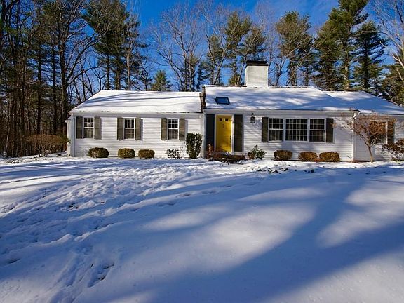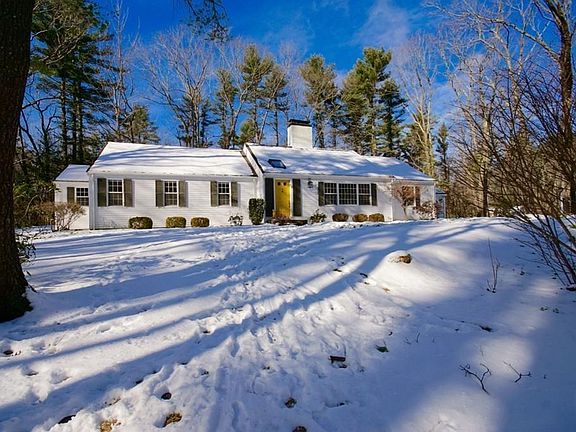 Quintessential Boxford single-level Royal Barry Wills home. Main living space features eat-in kitchen with custom cabinetry that flows into cozy family room with fireplace. Vaulted, beamed ceilings with skylights, and an abundance of windows flood the home with light and overlook the gorgeous scenery of the backyard. Formal living room with fireplace and dining room as well. Set down the hallway, find three large bedrooms, hall bath with jacuzzi tub and master bedroom, with walk-in closet and en-suite bath with glass shower. Downstairs features even more living space with finished room currently used as play room, and large additional room that could be used as exercise room, game room, office, etc! This home also features a first floor mud-room/laundry room, two car garage, walk-up attic with lots of storage, and oversized semi-circle patio--an ideal space for outdoor entertaining. A must-see home in an ideal neighborhood and renowned school district! First showings at OH 2/1.