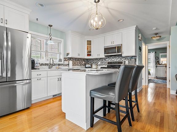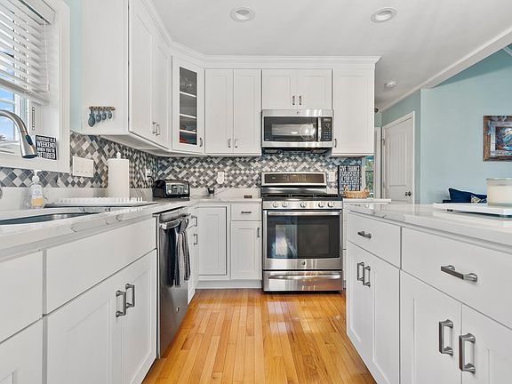 Highly Sought after Weirs Beach Village - 3-level Detached home offering 2 bedrooms, and 2 baths. Walking distance to beautiful Lake Winnipesaukee. This immaculate move-in ready home features an open living space on the first floor with vaulted ceilings, a kitchen with white shaker style cabinets, crown moldings, glass tile backsplash, center island, Cambria quartz countertops, under cabinet lighting and upgraded stainless appliances with gas cooking. Roomy living room with banks of windows and a gas fireplace with custom mantle & glass tile, sunny dining area. 1st-floor large primary bedroom w/large closet, bath with tile bathtub surround. Upstairs you will find another good size bedroom, a walk-in closet, a bathroom, and an open loft area. Additional features: 1 car garage with direct entry, hardwood flooring, finished lower level mud room with added storage closets, & tile flooring. Gas heat, central AC, on-demand water heater, and all mechanics are upgrades. Enjoy the outdoor oasis with the composite deck that opens to a 10x20 stone patio, electric awning, lawn irrigation, town water & sewer. Walking distance to the weirs beach blvd, marinas, and restaurants. The association has a clubhouse & inground pool, low fees. Come take a look! Open house Sun 12- 2 pm