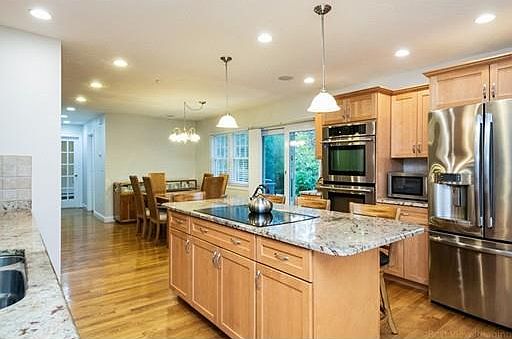 Price Reduced!! Need flexible Space? Bedrooms, Au pair, In-Law, or work at home? This contemporary cape has it all! The entire interior freshly painted in modern neutral shades. 5 bedrooms and 3.5 baths on 3 finished levels. With multiple sliding glass doors & an open concept floor plan youâll be greeting each season with passion! Sip lemonade on the front farmers porch or host a gathering in the shade of a mature fruiting grapevine with a built in bbq and custom patio. Details include a chefs kitchen, a sprawling master suite w dedicated sitting room, juliette balcony, an enchanting shed, a chicken coop, mature perennial plantings, mudroom with stone detail, a wood burning fireplace, and much more! Gleaming hardwoods THROUGHOUT. Thoughtfully designed, this house is bright and READY TO GO! Can't beat the location; nestled in a neighborhood, close to schools and Cohasset Village. Quick trip to commuter rail!