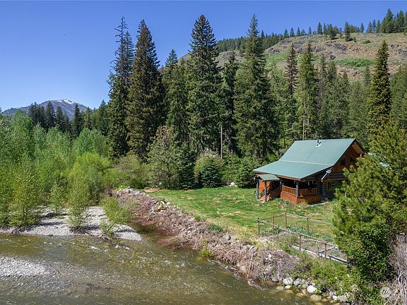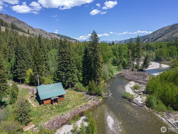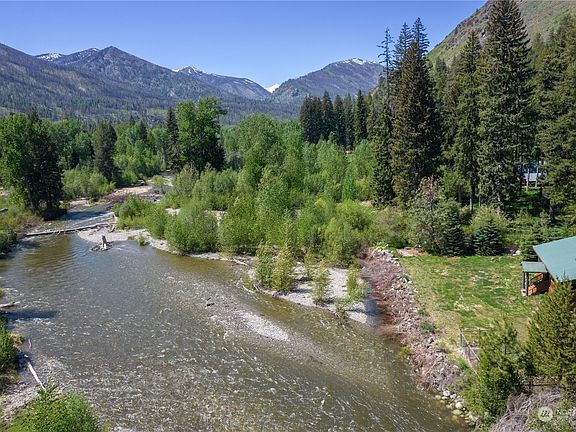 "A log home so close to the river that if you're a good enough fly fisherman you can hit the water from the deck". The deck has a hot tub and screened in porch. Main floor primary bedroom with a second upstairs in the open loft. An oversized garage with 10 foot doors. A perfect place for a summertime getaway or for the person who wants to be almost off-grid. With running water and power. A detached 40 x 40 gravel floor shop with insulated storage. Covered parking on both sides to store all your toys. RV dump. The sale also includes a second tax parcel, fenced with a horse corral. The seclusion of Mazama without the price tag. Watch a Bald Eagle fish for dinner. Take in the stars or take a dip in Twisp River. Horses welcome, snowmobilers too