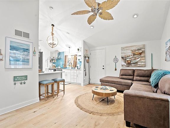 Step inside to vaulted ceilings and a thoughtfully updated interior featuring quartz countertops, stainless steel appliances, stylish backsplash, and contemporary fixtures. Fully renovated bathroom & two comfortable bedrooms make the perfect place to unwind.