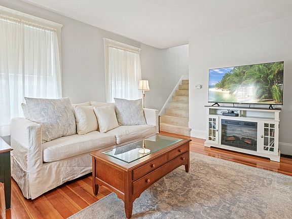 Located in one of Woburn’s desirable neighborhoods, this charming home offers the perfect blend of convenience & curb appeal—just minutes from I-93, I-95, Horn Pond, Woburn Village shopping, Logan Express, & neighborhood favorites like Leland Park and the Woburn Dog Park. A beautiful, welcoming front porch sets the tone as you enter inside the sunlit living room, which flows into a formal dining room w/ gleaming hardwood floors—perfect for entertaining. The eat-in kitchen features ample cabinetry & connects to a cozy family room w/ fireplace & large closet. A convenient half bath completes the main level. Upstairs, you’ll find three well-sized bedrooms w/ hardwood floors, along with a full bath. The finished basement adds flexible bonus space—ideal for a home office, gym, or playroom—and includes a separate laundry area w/ exterior access. Enjoy low maintenance siding, replacement windows & updated burner. The private, level backyard is ideal for relaxing, gardening, or entertaining.