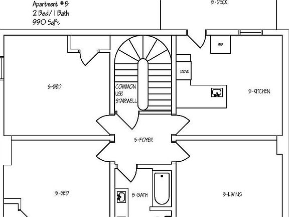 - Total interior livable area: 990 sqft