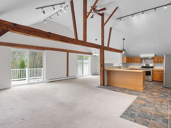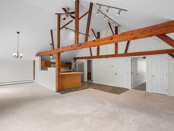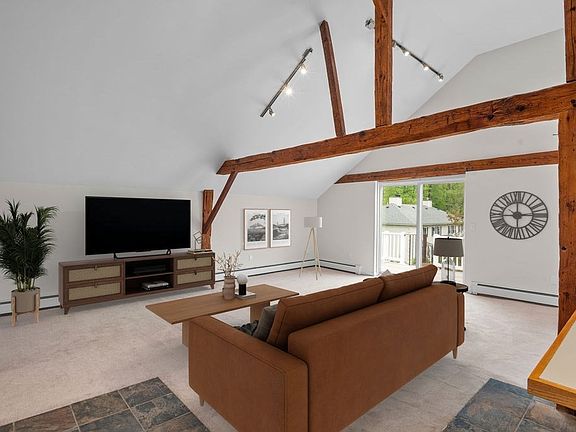 Historic charm meets modern comfort in Merrimac. Welcome to this beautifully updated 2-bedroom, 1 3/4 bath condo offering 1,420 sq ft of open living space in the heart of Merrimac. Rich in character, this home features original hand-hewn beams from the 1850s, seamlessly blended with modern upgrades for today’s lifestyle.The open floor plan is enhanced by fresh paint and brand-new carpeting throughout the bedrooms, creating a bright and inviting atmosphere. The kitchen flows into the living and dining areas, perfect for relaxing at home. Step outside to enjoy a newly resurfaced private deck—ideal for morning coffee or dining al fresco. Additional highlights include a loft space perfect for an office, two dedicated parking spots, ensuring convenience year-round, & basement storage,. Set in a quiet, well-maintained community close to shops, dining, and commuter routes, this condo offers the rare opportunity to own a piece of local history with all the comforts of modern living.