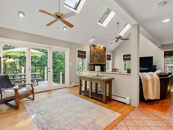 This picturesque colonial is nestled into a well-established neighborhood offering a perfect commuter location. The first floor boasts a large eat in kitchen with gas range and an oversized family room with cathedral ceilings, a two story wood burning fireplace and tons of natural light. The first floor is finished off by a full laundry room, a half bath and flex space for a playroom or home office. The second floor offers three good size bedrooms with a full bath and a large primary bath. The fully finished walk-out lower level features a work out area, TV room, a fourth bedroom and another full bath.Move right in and enjoy the fall on the gorgeous two-tiered trek deck overlooking the large flat backyard. Showings to start at Thursday broker open house.