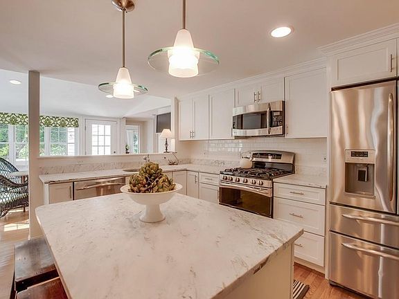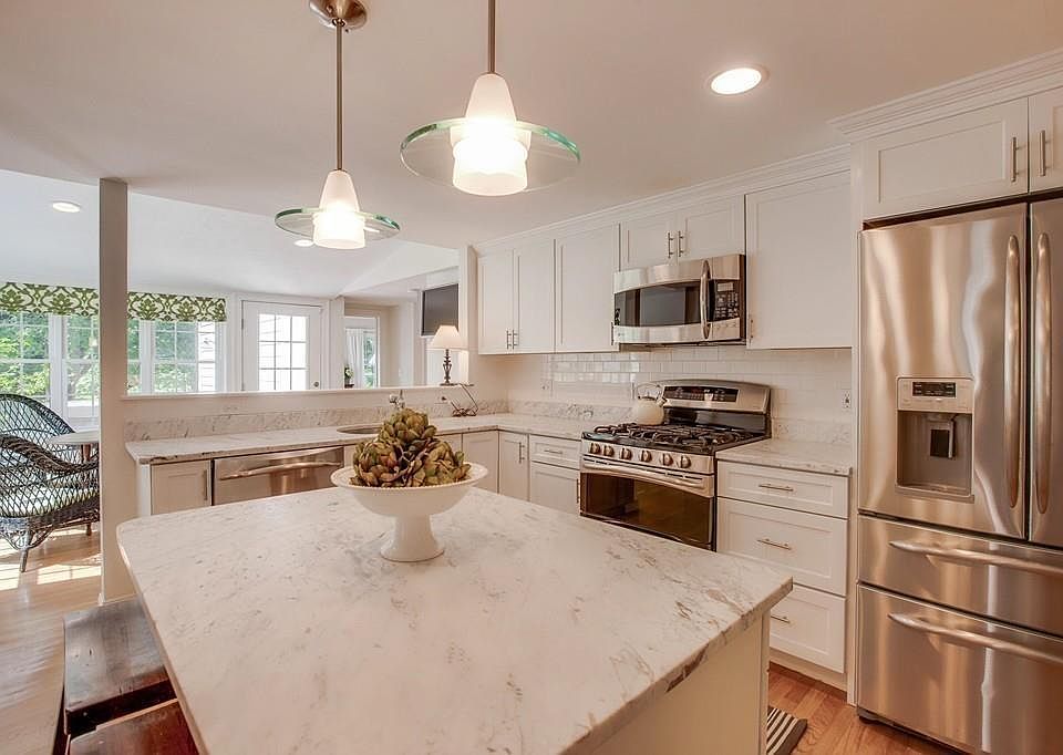 Whether you start the day with a cup of coffee in the sun drenched breakfast nook, or end it with a glass of wine on the screen porch overlooking mature perennial gardens, 19 Warner Road is a home that begs you to sit back, relax & let life come to you. With a complete renovation and addition in 2013, the layout lends itself perfectly to those with single level living in mind. The vaulted ceiling master bedroom is a showpiece with walk in closet and master bath featuring a double vanity with marble countertops & a custom tiled shower with glass surround. The artistry continues in the kitchen with white shaker style cabinets, center island, & marble countertops with subway tile backsplash. An attached single car garage opens to a spacious mudroom with laundry. A detached 3 car garage with water & electricity is perfect for car buffs or those who desire space for a workshop. Less than 2 miles to the commuter rail, downtown & the River Walk. This is North Shore living at its finest!