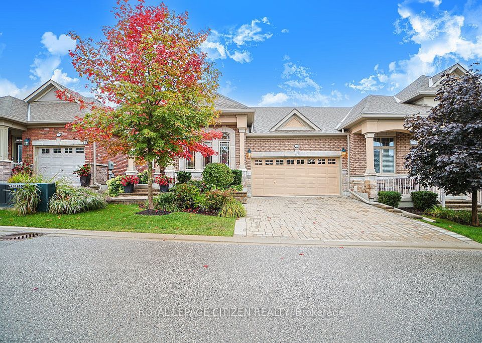 VERY RARE DOUBLE CAR GARAGE!! Tucked along the fairways of Briar Hills picturesque golf course sits this highly sought-after adult lifestyle community, where friendships and neighborly connections come naturally. This charming brick and stone semi-detached bungalow offers nearly 2,000 sq. ft. of finished living space, featuring 2+1 bedrooms and 2.5 bathrooms and a rare 2-car garage! The spacious kitchen is designed to impress with classic white cabinetry, granite countertops, a sleek backsplash, and stainless steel appliances, including a gas stove and dishwasher. A bright breakfast nook welcomes natural light, while a cozy adjoining alcove makes the perfect spot for a home office or reading retreat. The open-concept living and dining area showcases hardwood flooring, a warm gas fireplace, and a walkout to a covered patio ideal for relaxing or entertaining. The main-floor primary suite boasts coffered ceilings, large windows, and a 4-piece ensuite complete with a walk-in shower and generous vanity. The lower level is equally inviting, offering a comfortable family room with plenty of natural light and a second fireplace. A rough-in for a kitchenette or wet bar enhances the space for entertaining, while a guest bedroom with a 3-piece bath ensures privacy for visitors. Additional conveniences include a laundry room, utility room, cantina, and abundant storage. Upgrades such as central air conditioning, direct garage access, and exclusive parking complete the package. This meticulously maintained home delivers exceptional comfort, privacy, and leisure within a vibrant adult community where every amenity is just moments away.