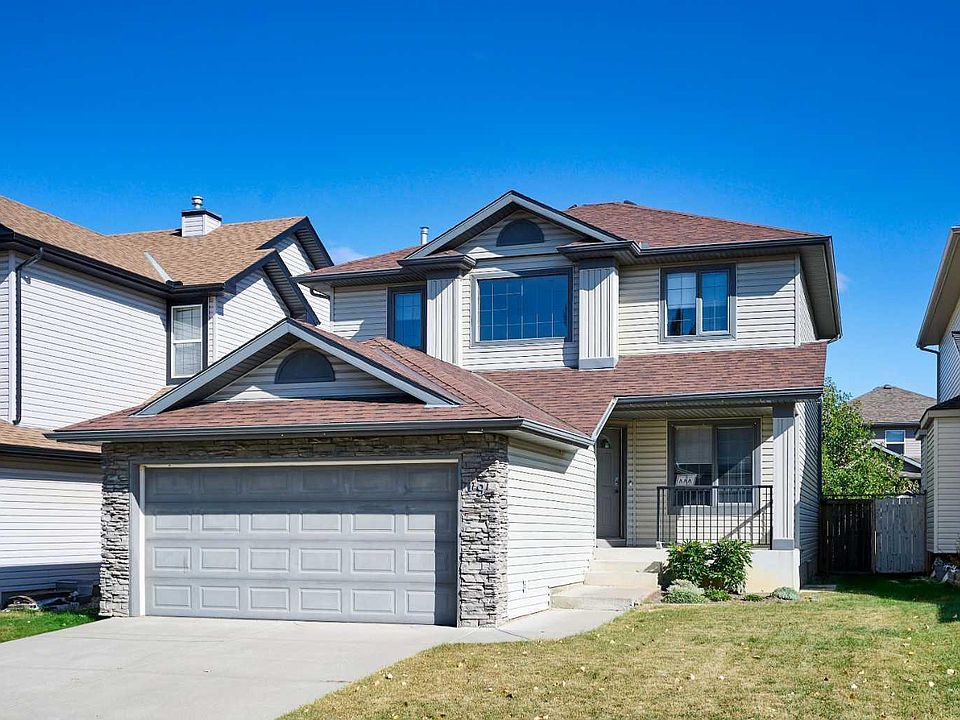 Two-storey family home located in the sought after community of West Springs, offering 1763 sq ft of living space above grade. Situated inside a quiet cul de sac, the property is adjacent to a large community park and playfield, providing convenient access for children and pets. The main floor features an open design with natural light from the backyard. The lower level is unfinished, allowing for your future development. There is a sizable main floor living room with a natural gas fireplace, and a front flex room suitable for use as a dining area, home office, or additional living space. The upper floor includes three bedrooms, a main bathroom, and the primary bedroom with a full ensuite and walk-in closet. A double attached garage and driveway offer ample parking, with additional street parking available. The backyard is fully fenced, primarily grass, with some paving stones. The location provides access to major roadways, schools, shopping, and transit. A fantastic property to call home!