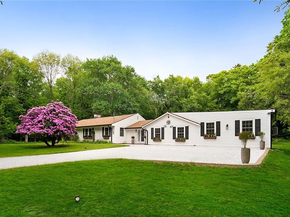 Completely renovated and turnkey single-level home with a separate studio in a most convenient locale. Fabulously designed for living, working and entertaining. Wonderful light-filled, flexible floor plan. Gorgeous new kitchen and baths. The heart of the house features a spacious living room w/vaulted ceiling and exposed beams opening to the dining room and sleek kitchen which flows to the great room w/brick fireplace. The primary bedroom with spa bath is in its own wing of the home. So many new updates: kitchen; baths; floors; laundry; roof; siding; septic; electrical; plumbing; HVAC w/smart thermostat; insulation; water heater; heat pump; video surveillance system; smart door lock. The awesome studio is just steps from the main house and offers heated/air conditioned space perfect as a gym, office, studio, or perhaps a future pool cabana. Completely level, dry, and private 2.5 park-like acres. Easy access to Pound Ridge, Bedford, the Merritt Parkway, 684, and the Stamford and Mount Kisco train stations.