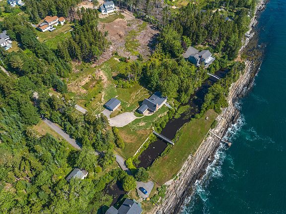 Welcome to the ''Blackgold Lodge'' neatly situated on 2.24 acres on the beautiful rocky shores of Orr's Island, with expansive, unobstructed views of Casco Bay. This unique, contemporary home features the great room with its cathedral ceiling and welcoming fireplace, 3 bedrooms, 2 baths, office, large finished family space in the basement with additional fireplace, laundry room, workshop, detached 2 car garage, complete with dramatic ocean views in almost every room. Follow the walking bridge over your small fresh water pond to 230 feet of open ocean frontage. There is also potential for a second home on back portion of lot. Come and make this one of a kind oceanside home your own.