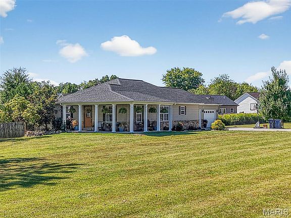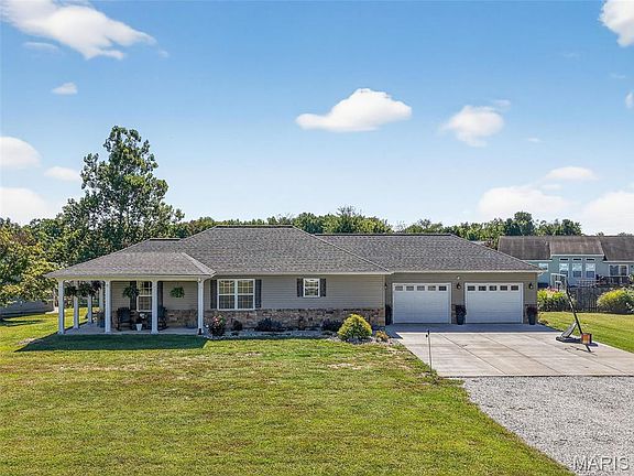 Welcome to your dream home nestled on a private 1+ acre lot! This stunning 3 bed, 3 bath home boasts over 1,800 sq ft of beautifully designed living space! As you approach, you'll be greeted by an immaculate exterior and an oversize 2-car garage, Step inside, and you'll immediately notice the elegant hardwood floors that flow throughout the main living area, the main living area features a striking vaulted tray ceiling that seamlessly flows into the dining area, perfect for entertaining. The kitchen offers gorgeous maple cabinets, updated stainless steel appliances, and plenty of counter space! The primary bedroom is a true retreat, complete with a vaulted tray ceiling and its own bathroom.. The main floor is thoughtfully designed with two additional bedrooms, a full bathroom, and a large main floor laundry room. Head downstairs to the finished lower level, where you'll find a versatile media room and a large flex room with a wood stove. This level also includes a full bathroom and an extra private room, ideal for a home office, craft room, or whatever your heart desires. Beyond the home, Cuivre River State Park is your backyard playground, just steps from your door. The home is conveniently located near quality schools and is only 5 miles from Highway 61, making commutes and daily errands a breeze. Recent updates include a new roof (1.5yrs), new HVAC (1yr), and more providing comfort for years to come! Schedule a showing today and be prepared to fall in love!