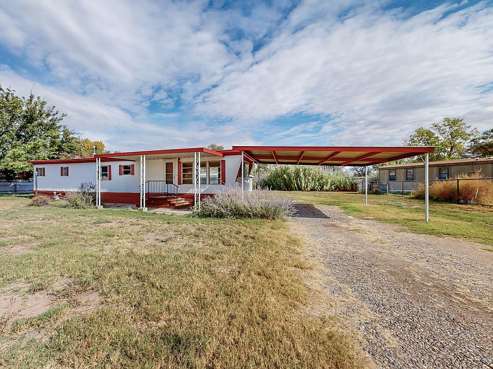 Why rent? Come & enjoy country living in this charming 2 bedroom, 1 bathrooms mobile home, on 0.5 ac. Home has lots of upgrades including freshly painted inside & outside, new metal roof on home, shingles on shop/storage, new flooring in bedrooms, new tile shower walls, plus refrigerated ac unit! This beauty has lots of windows making the home bright w/ an open feeling. The kitchen has pantry area, double sink, gas stove, refrigerator, dishwasher plus washer & dryer! The master bedroom has a built-in vanity area w/ drawer dresser & storage w/ lots of counter area. The bathroom has a bathtub & tiled shower wall. Outside the beautiful lot has shop w/ electricity, concrete flooring, attached storage area plus a large carport. Some pictures are virtually staged.Call for your private showing!