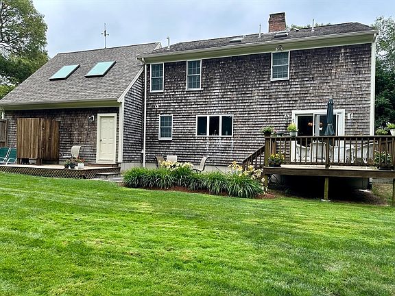 Why not live at the Cape? This is the home that you’ve dreamt about and worked so hard to earn! Beautifully maintained and in a neighborhood of homes reflecting pride of ownership. Perfectly sized to accommodate retirement, as well as three generations of family during summer and holiday weekends. Located on a cul-de-sac in Harwich Port's Ridgeport neighborhood, the home is near Saquatucket & Wychmere Harbors, Bank St and Red River Beaches, downtown Harwich Port, library, Brooks Park. A custom paver front walk leads to a welcoming granite stoop. A 2-car garage protects from sun and elements. Bright and open first flr with hardwood for kitchen, dining, and TV but also a private study, half bath and laundry. Up to four bedrooms and two full baths with skylights on the 2nd flr. Primary with cathedral ceilings and hand-painted sea scape wall murals. The rear deck looks over a secluded, level grassy yard, stone patio and 2nd deck with shower. Cntrl A/C. Irrig. Alarm. Custom Elfa shelving.